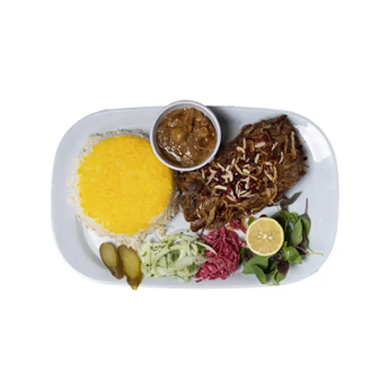 600 گرم گردن گوسفندی، برنج کته زعفرانی، دورچین