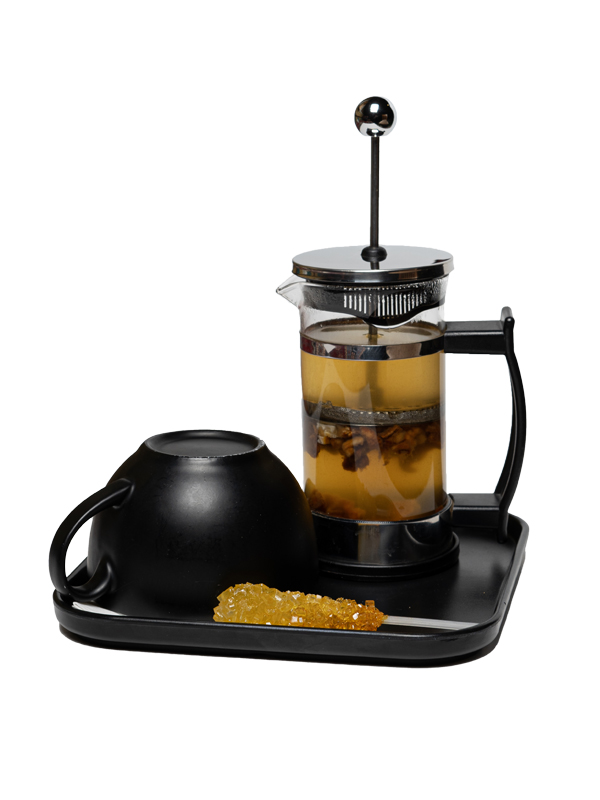 تکه های سیب، زنجبیل، پرتقال، دانه کاکائو
