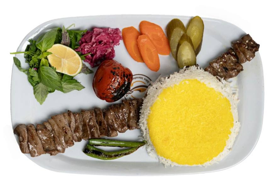280 گرم فیله گوسفندی، برنج کته زعفرانی، دورچین